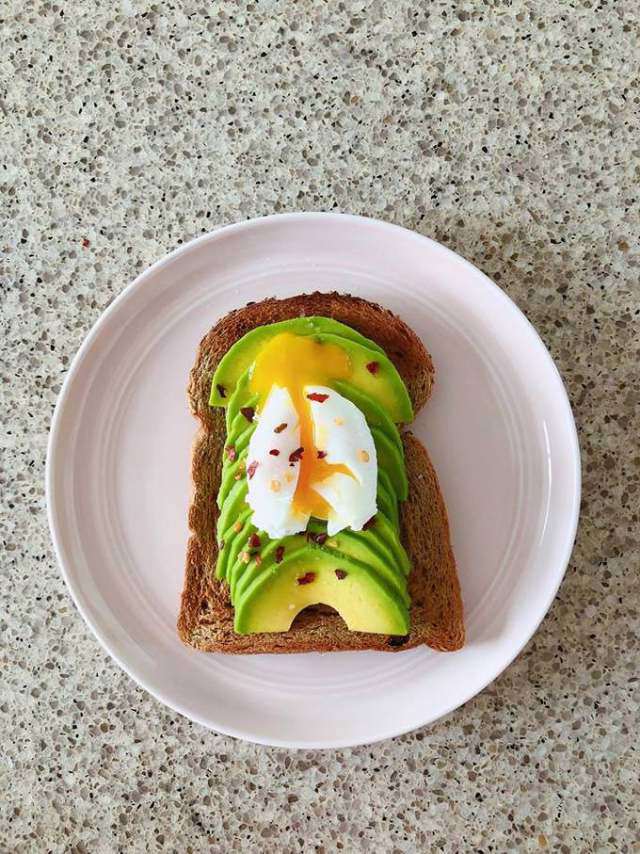 Nàng ngọc nữ rất hay kết hợp bơ cắt lát với trứng gà.